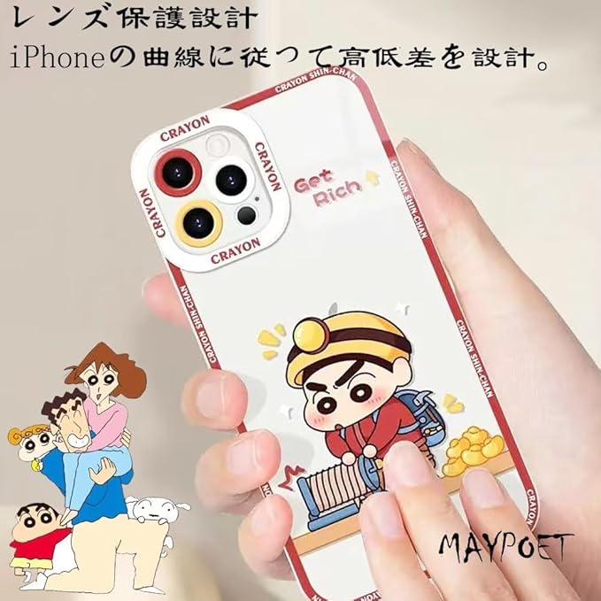 かわいい iphone17pro max 用 ケース クレヨンしんちゃん スマホケース しんちゃん アイフォン17promax 用 カップル カバー 6.9インチ スマホケース TPU クリアケース バンパー 薄型 超軽量 レンズ保護 iphone17ProMax用 透明 A