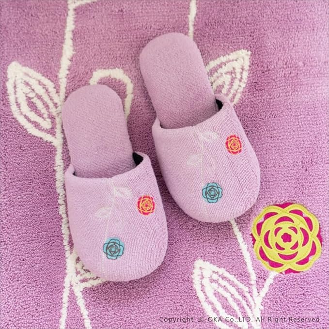 ●大きなお花のアップリケが目を引く北欧風デザインの洗えるスリッパ