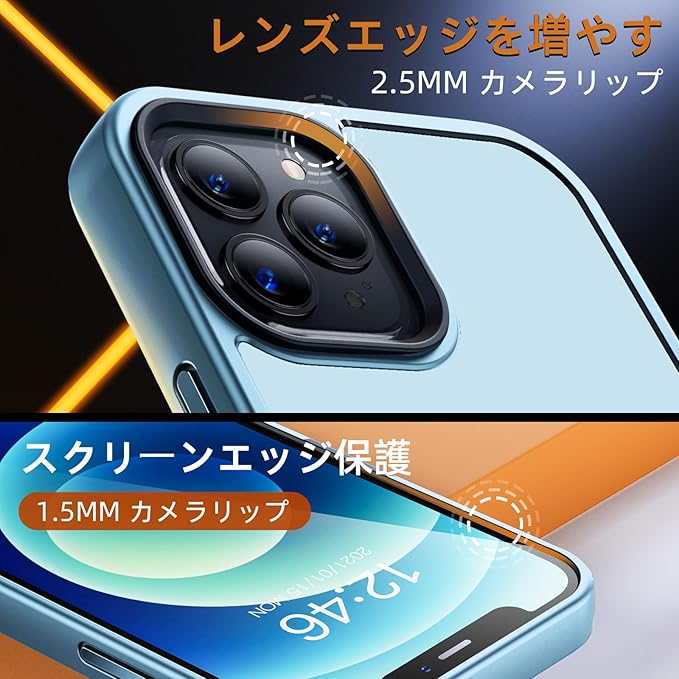 【レンズ保護・損失を軽減】 カメラより2.5mm厚、画面より1.5mm厚で、日常生活において様々な損傷に避ける。スクリーンやレンズの破損リスクを低減、高額の修理費用を節約。このケースとのフィット感を高めるために、購入する前に対応機種をご確認ください。ケース自体に厚みがあり、MagSafeアクセサリーによって充電や吸着することが可能ですが、磁力が弱くなる、ご了承ください。