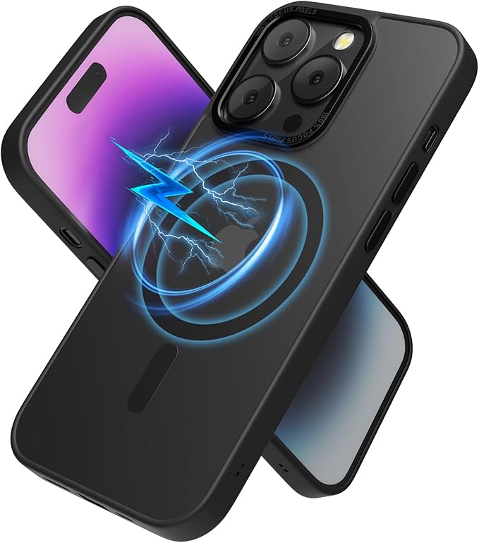 【米軍MIL規格・Magsafe対応】iPhone 14 Pro Max 用 ケース 半透明 マグネット搭載 耐衝撃 黄変防止 耐久性 磁力強い 高速充電速度 ワイヤレス充電 磁気スマホケース (ブラック)