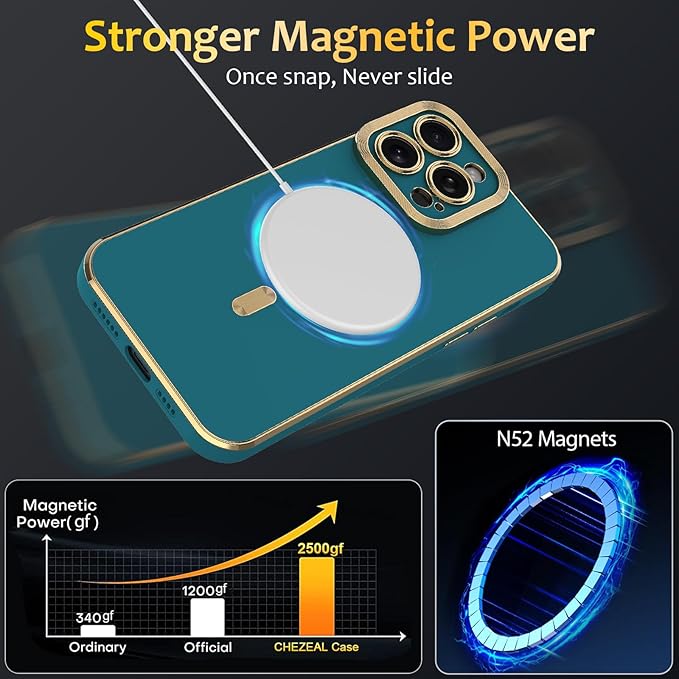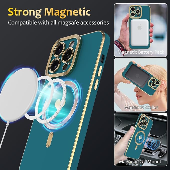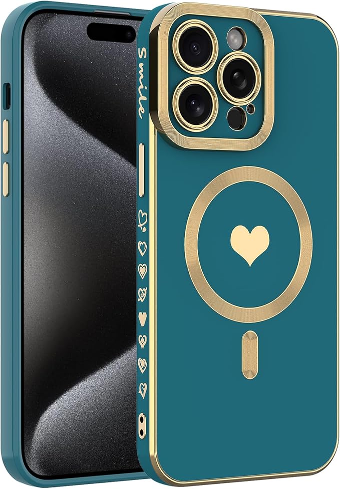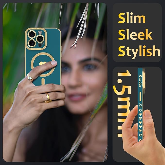 wahhle iPhone 11 Pro Maxに適したマグネットケース、豪華メッキがかわいいハート型ケースはMagsafeと互換性があり、カメラプロテクター付きの女性向け(iPhone 11 Pro Max,Green)