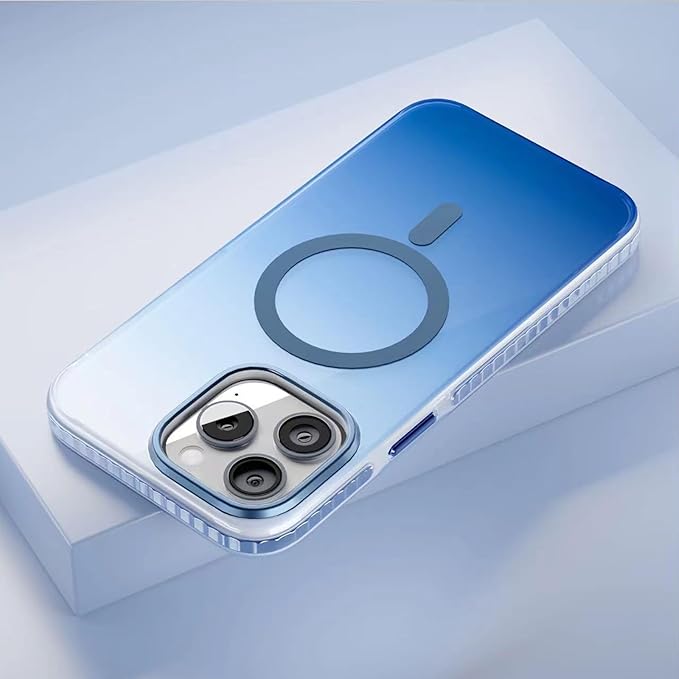 Angeo iPhone 16 Pro Max 用 ケース グラデーション透明 MagSafe対応 ワイヤレス充電 マグネット搭載 耐衝撃 薄型 バンパー 傷に強い背面 黄ばみなし 防指紋 い マグネット ケース iPhone16 pro max 用ケースクリア 保護 iPhone 16Pro Max 用 クリア 保護ケース、グラデーションブルー