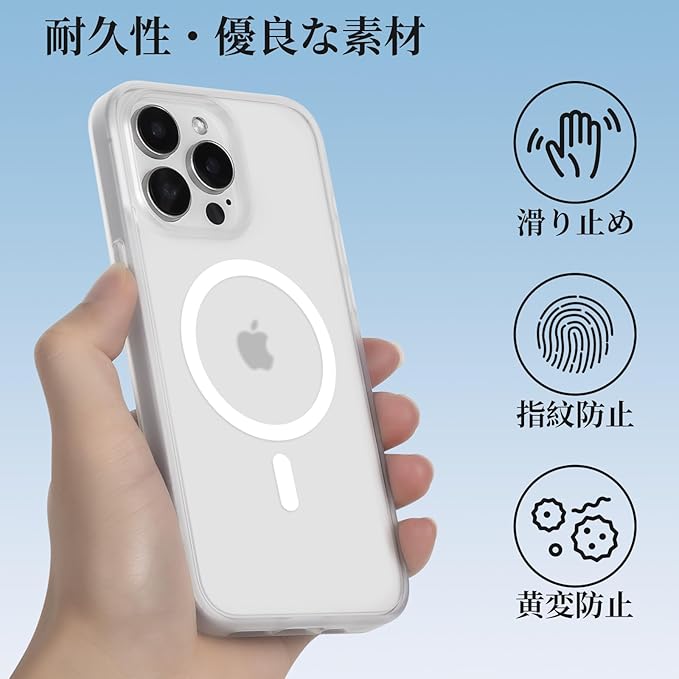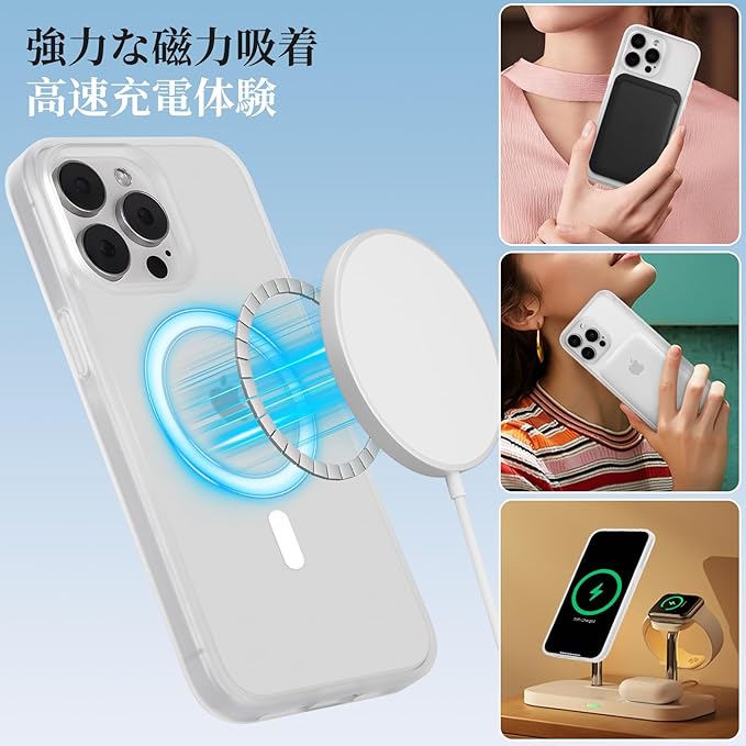 iphone15pro max ケース Magsafe対応 いphone15promax ケース 耐衝撃 マット 滑り止め 指紋防止 米軍MIL規格 黄変防止 耐久性 ワイヤレス充電対応 半透明 マグネット搭載アイフォン15ProMax 用 カバー 6.7インチ (マットクリア)