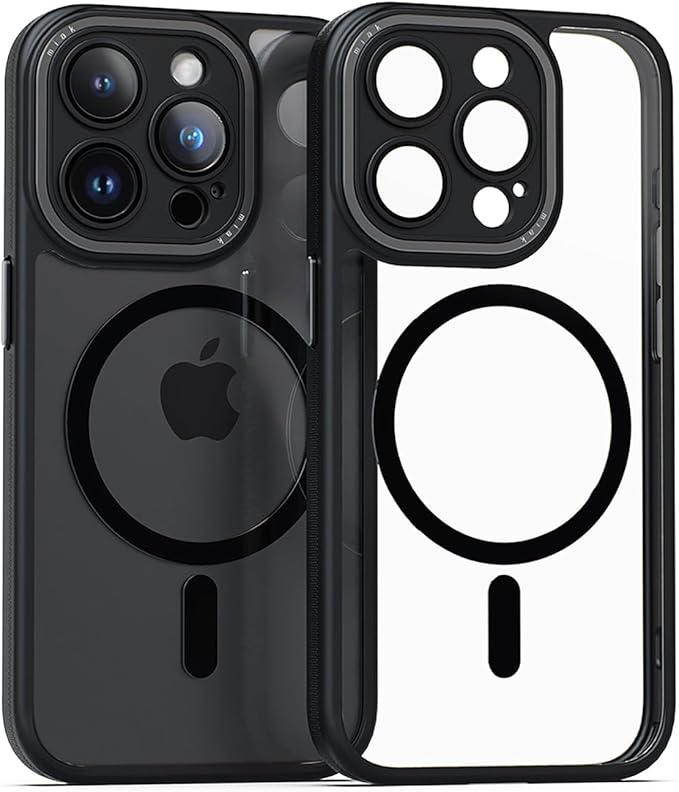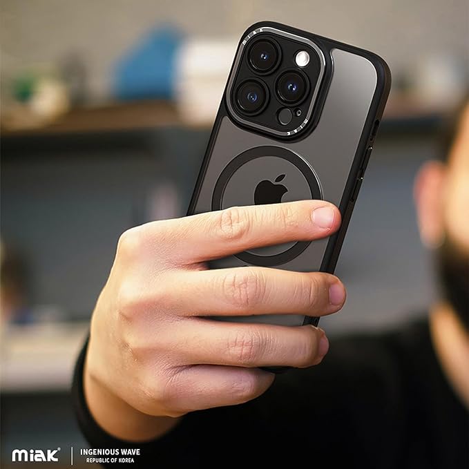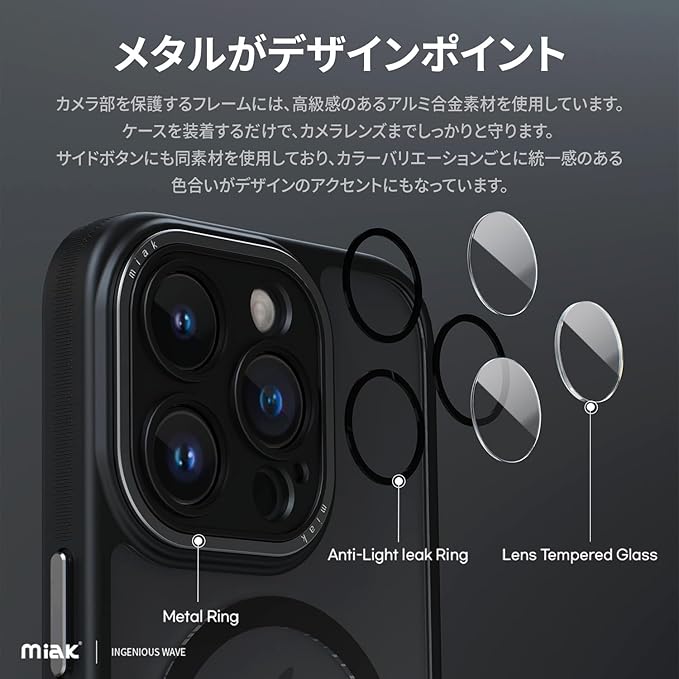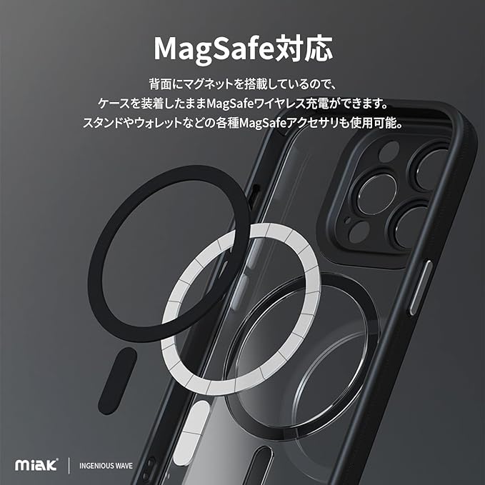 miak iPhone 15 Pro Max ケース レンズガード 一体型MagSafe 対応クリアケース [ マグセーフ用 マグネット搭載 カメラレンズ保護 4つ角 エアクッション 耐衝撃 TPUとポリカーボネートのハイブリッド 防塵 アルミニウム製ボタン ワイヤレス充電対応 洗練デザイン ] ストラップホール付き MA52204i15PM ブラック 【国内正規品】