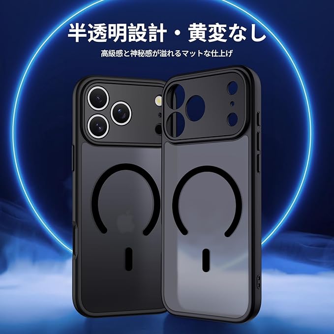 【MagSafe対応・米軍規格】Holidi iphone 17プロマックス ケース MagSafe マット感 マグネット搭載 米軍MIL規格 全面保護 ワイヤレス充電 黄変なし 二重構造 17ぷろまっくすケース Magsimpl-Series 半透明ブラック