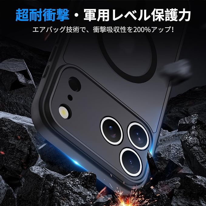 【MagSafe対応で一瞬高速充電!】iphone 17 pro max ケースのバックパネルに38個の強力なN52マグネットを搭載し、振っても安定感抜群の高速充電を実現!充電しながらゲームも楽しめ、ワイヤレス充電や各種MagSafe対応アクセサリーにもピッタリ対応しています。※予めご了承ください:磁力があるため、携帯本体付属のタッチペンが磁力干渉を起こして使えなくなる可能です。また、電子決済の反応も弱くなる可能です。