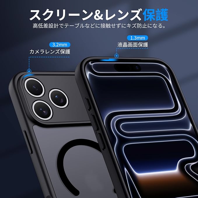 【万全の保護】い phone 17 pro max カバーの縁が1.5~2mm高く設計され、カメラレンズと液晶画面を完璧に保護します。