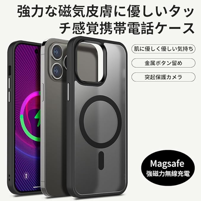 iPhone 14 Pro Max用 ケース MagSafe対応 ワイヤレス充電 磁気ケース 耐衝撃性 米軍MIL規格の保護 傷に強い背面 6.1インチ