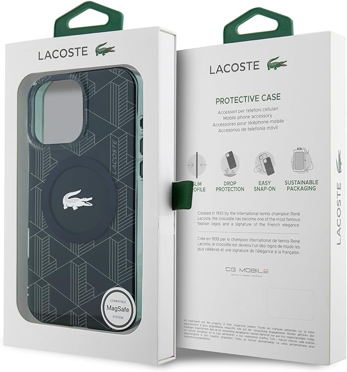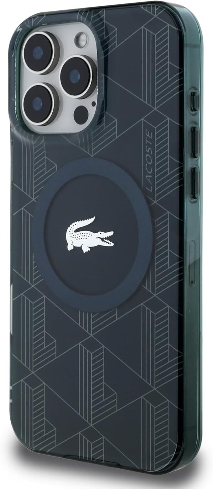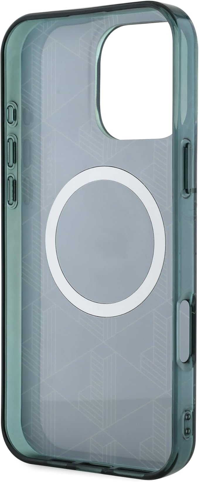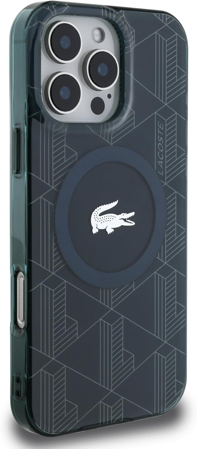 LACOSTE iPhone 16 Pro Max用ケース MagSafe対応 IML加工 モノグラム シルバー ワニロゴ付き 耐衝撃 スマホカバー ダークグリーン