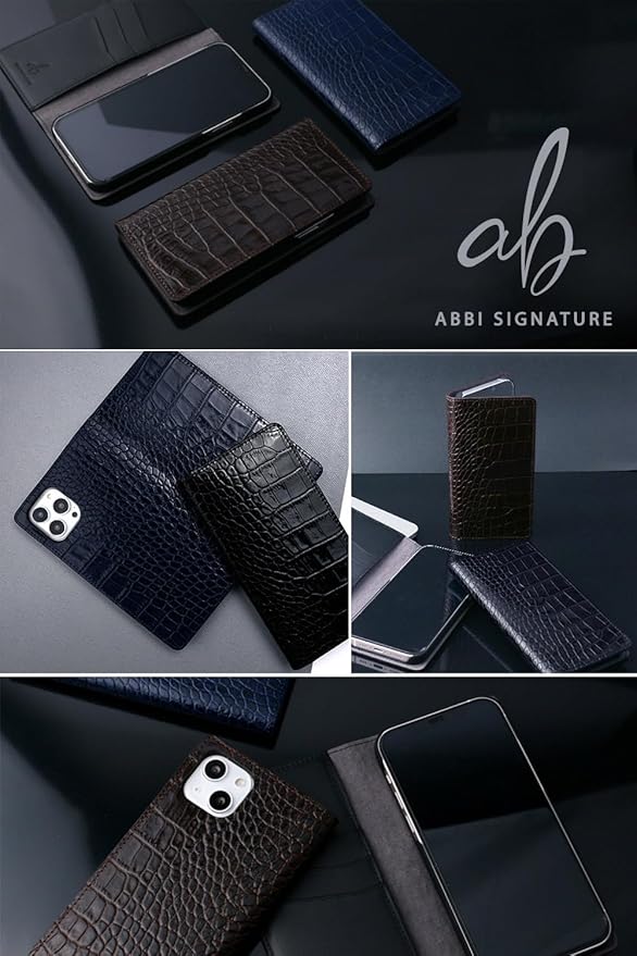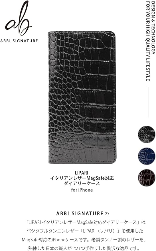 ABBI SIGNATURE iPhone 15 Pro Max 用 ケース 日本製 手帳型 本革 LIPARI イタリアンレザー ダイアリーケース MagSafe対応 [ クロコダイル 型押しレザー ハンドメイド 耐久性 レザーケース V字式カードポケット ワイヤレス充電 ] アイフォンケース アップル アイフォンケース 横開き ABS26196i15PM ブラック 【国内正規品】