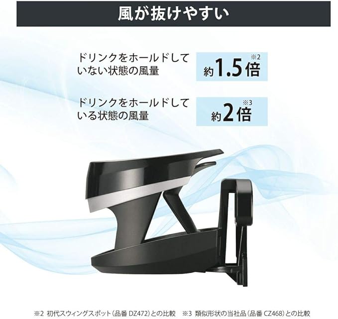 左右にホルダー位置を動かせるドリンクホルダー・スイングスポットに新デザイン製品登場!ホルダー部が3段階可動する「ホルダースイングシステム」を採用。