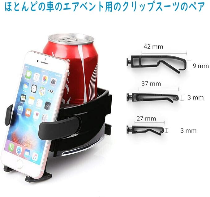[Jisoncase] 車用ドリンクホルダー スマホホルダー一体型 2way エアコン吹き出し口取付 運転席/助手席兼用 ドリンク 190-500ml / スマホ 3.5-6 インチ対応