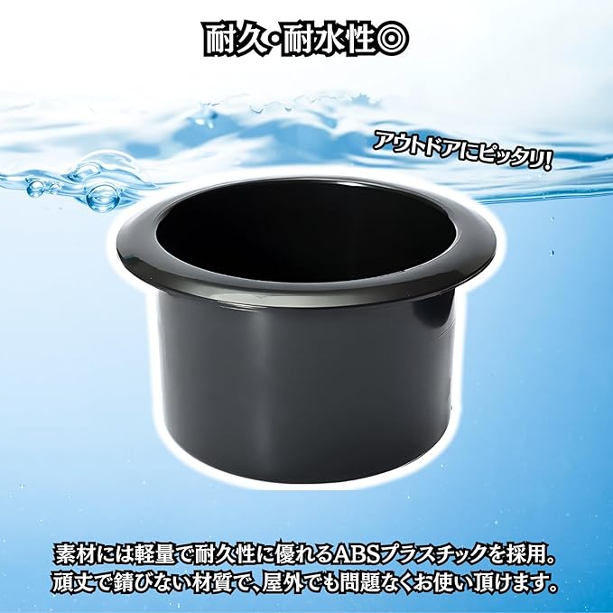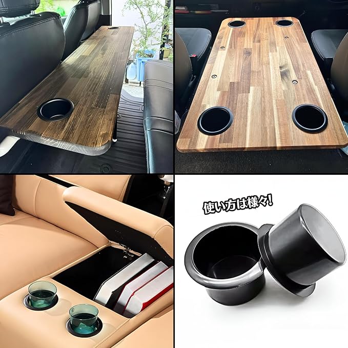 【DIY用カップホルダー】DIYで飲み物スペースを自作する際に役立つカップホルダーです。テーブルや肘置きにホールソーで穴を開けてはめ込むだけで、お手軽に飲み物スペースを増設できます。様々な箇所に設置できる複数セットでお届け!