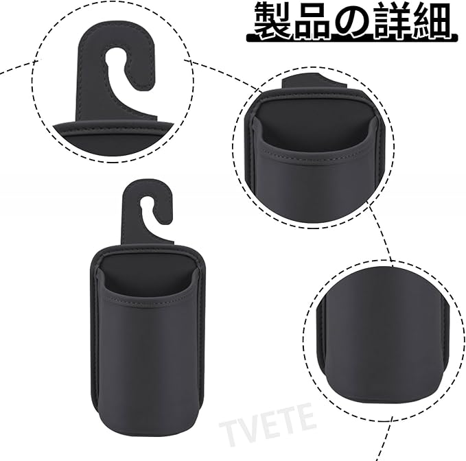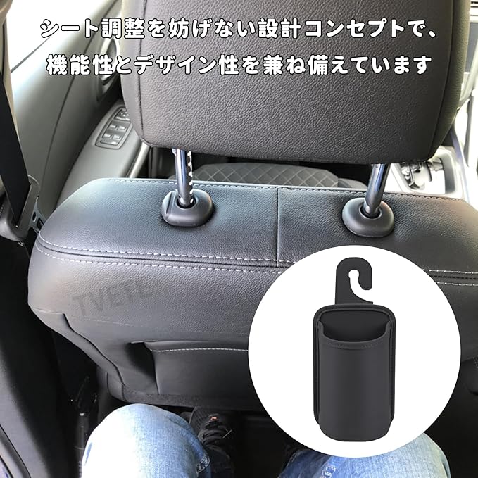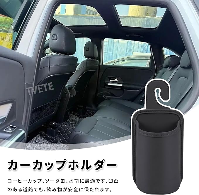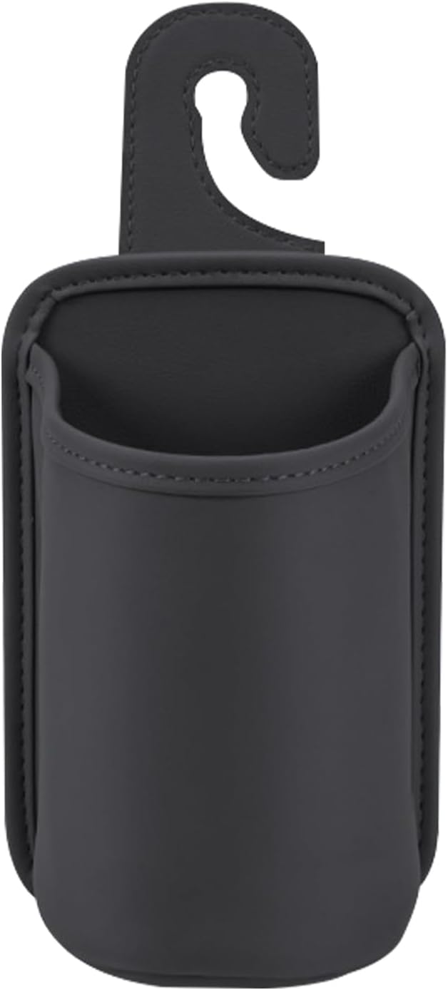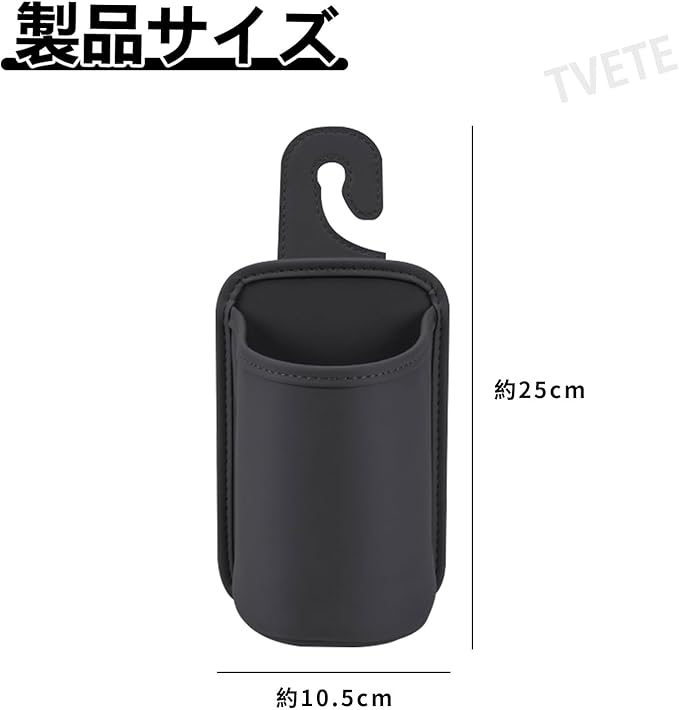 ドリンクホルダー 車 カップホルダー 吊り下げ シートバック ドリンクホルダー フック式 PUレザー 飲み物 小物収納 ゴミ入れ スマホ 後席収納 車用シートバック 収納ボックス 車内整理 カー用品(約25x10.5cm ブラック)