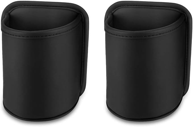 Catland ドリンクホルダー 車 後部座席 クリップ式 カップホルダー 増設 シートポケット ドアポケット対応 車用ドリンクホルダー 小物入れ 収納ボックス ゴミ箱兼用 車内グッズ PUレザー ブラック 2個セット