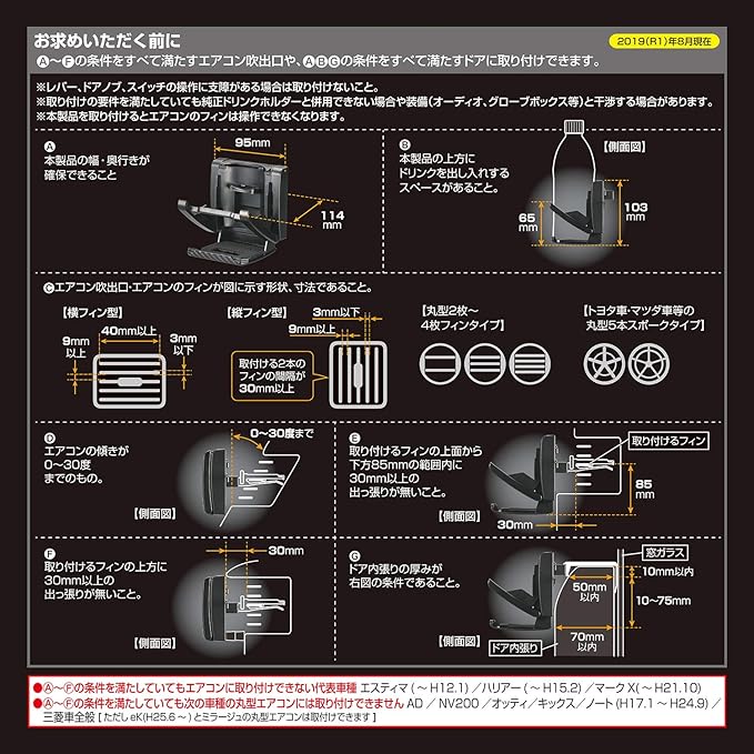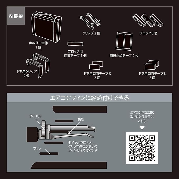 本製品はエアコン吹き出し口とドアに取り付けることができるドリンクホルダーです。使用しないときには畳んでおけるスリム設計になっています。