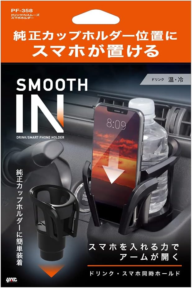 槌屋ヤック(Tsuchiya Yac) 車内用品 ドリンクINスムーズスマホホルダー ブラック 長さ15.6 幅11.6 高さ17.8cm PF-358