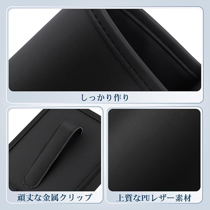 【シンプルな見た目・カタカタ音ない】高品質な合成皮革の素材を採用し、シンプルな外観と落ち着いたブラック単色で内装に自然に馴染み、高級感を演出します。ドリンク増設ホルダーは柔らかく手触りの良い素材で、走行中にカタカタような音もなく、快適なドライブをサポートします。汚れた際も湿らせた布でさっと拭くだけでお手入れが簡単です。