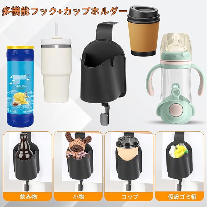JEYODA ドリンクホルダー 車用 後部座席 車用シートフック 3in1 荷物掛け カップホルダー スマホホルダー 飲料収納ホルダー 車ヘッドレスト 車用収納 小物入れ 簡取り付けカー用品 便利グッズ (黒)