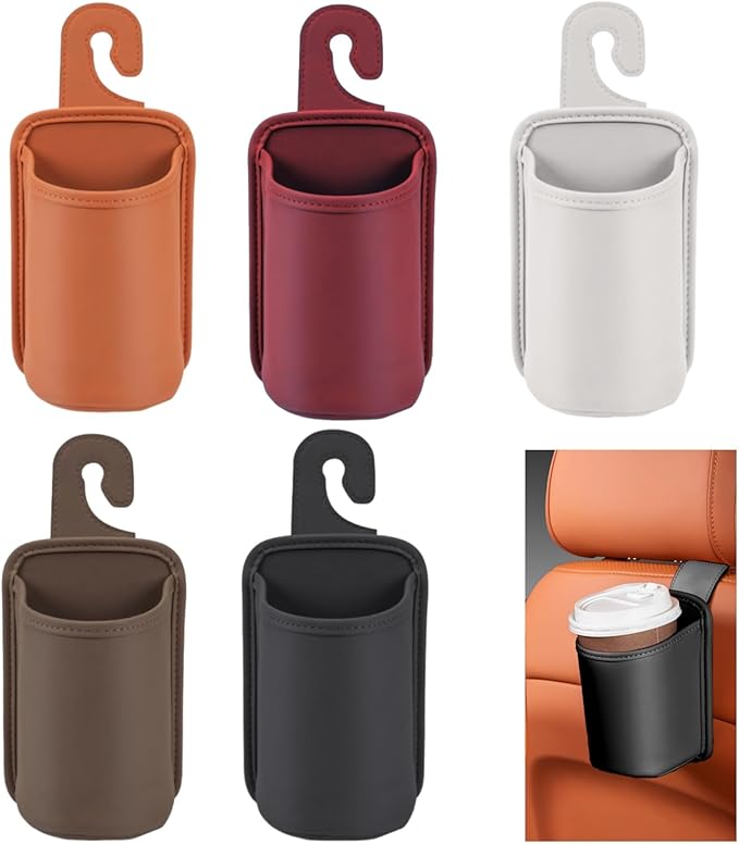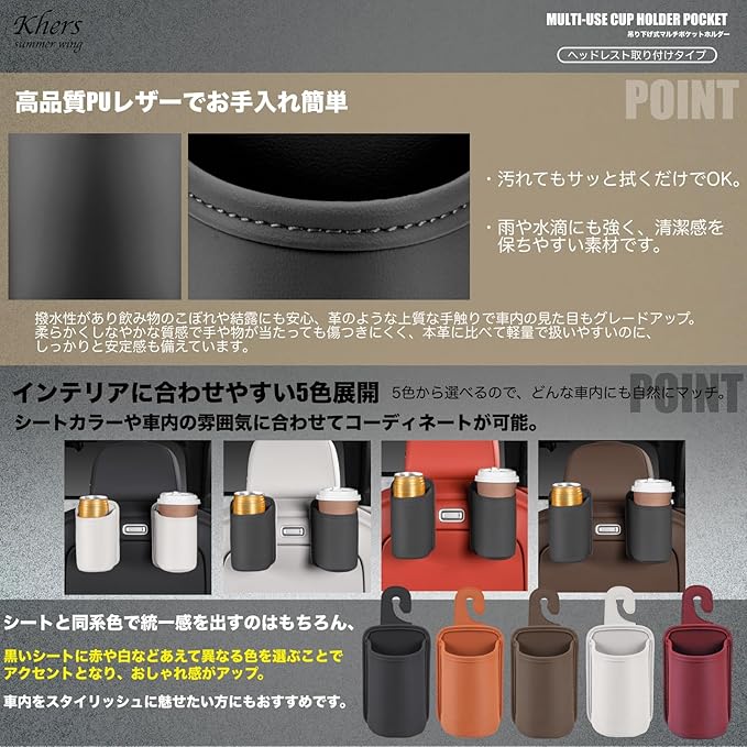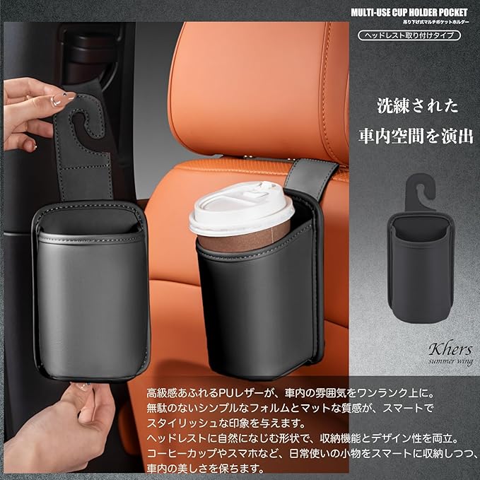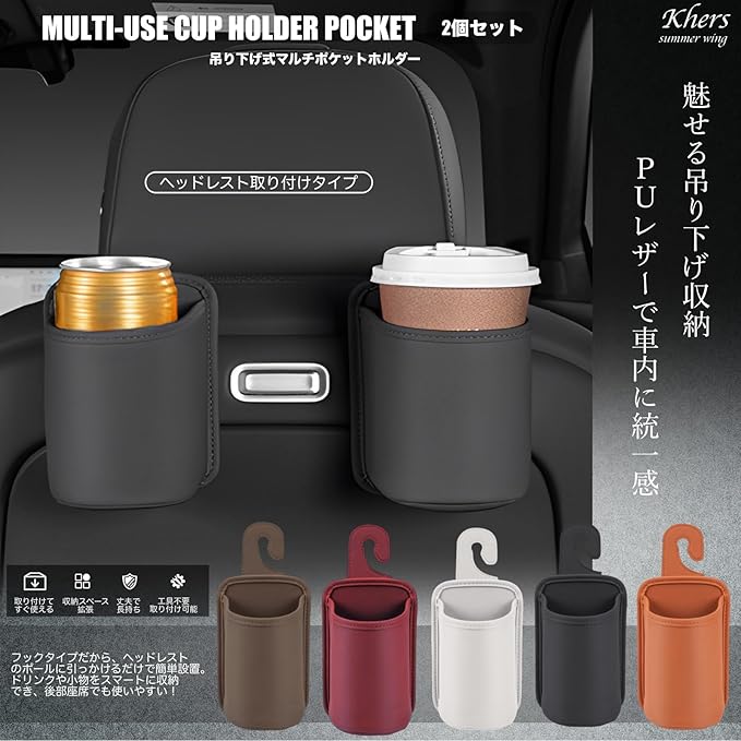 ヘッドレスト ドリンクホルダー 車 後部座席 PUレザー 2個入り (キャラメル)
