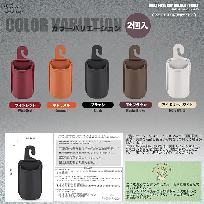 ヘッドレストのポール部分に取り付けるだけで、簡単に使えるマルチ収納ポケットです。2個セット。
