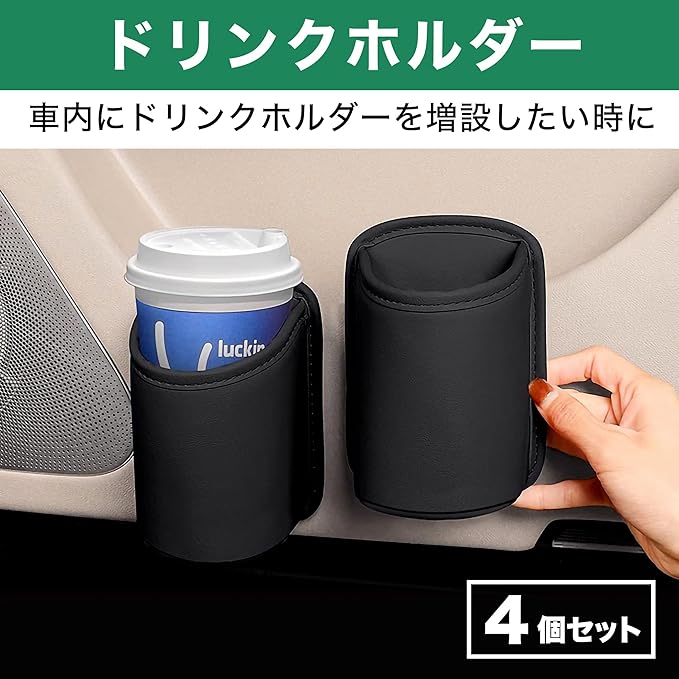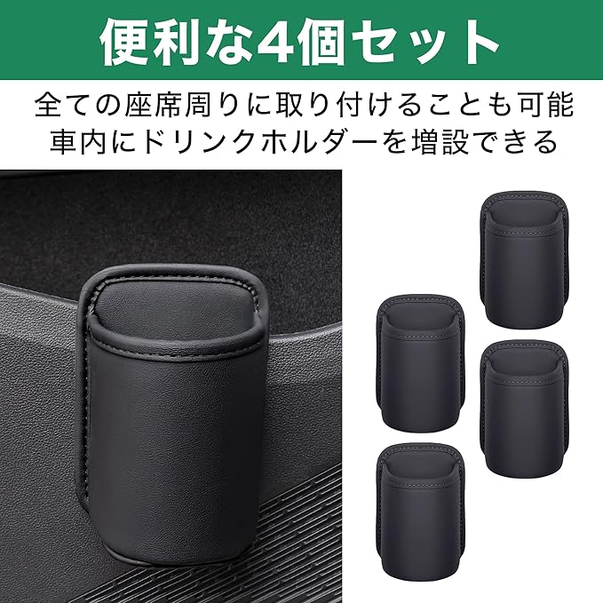 全ての座席周りに取り付けることも可能:同じカラーのドリンクホルダーが4個揃ったセット品ですので、全ての座席周りに取り付けることも可能です。車内にドリンクホルダーを増設したい時にぜひ活用してみてください。