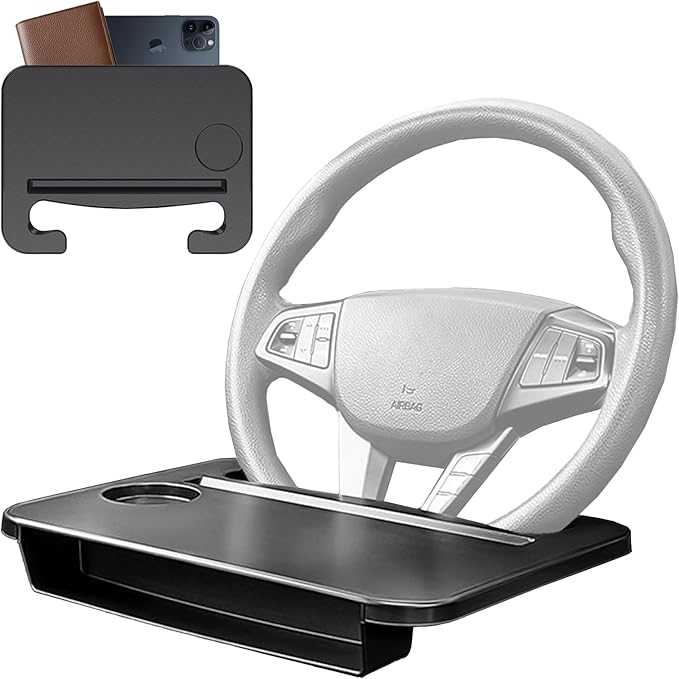 【車内でPC作業や食事が快適】ハンドルに取り付けるだけで、ノートPC作業・食事・書き物がしやすい安定したテーブルに変身。休憩時間や車中泊など、車内での作業効率が大幅UP。