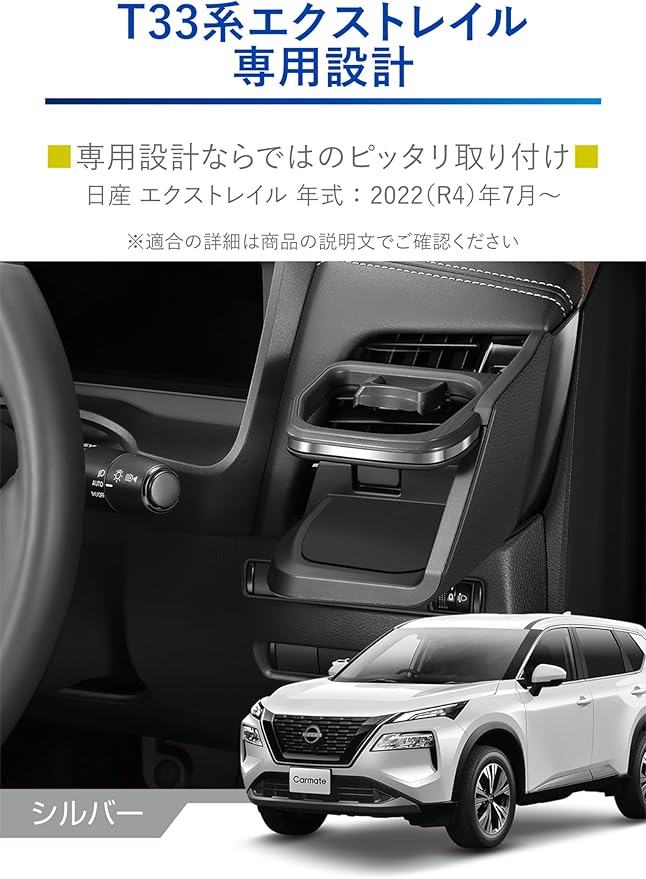 カーメイト 車用 ニッサン エクストレイル 専用 エアコン ドリンクホルダー【 運転席 用 】 【 シルバー 】 日産 エクストレイル 型式: T33 / SNT33 年式: 2022(令和4)年7月~ カップホルダー 工具不要取付 車種専用 NZ855