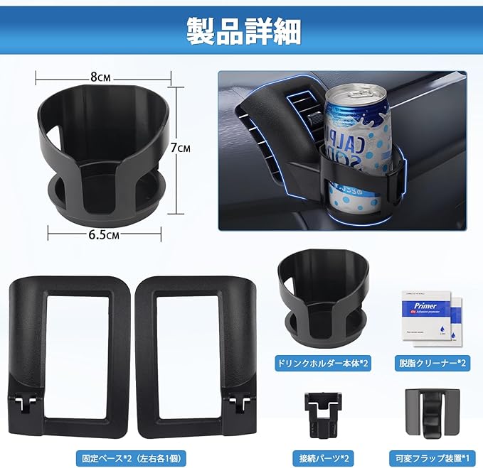2.【様々なドリンク対応可能】:可変フラップ装置が搭載されているため、車体が揺れる場合にもしっかり安定します。また、装置を取り外せば、取っ手付きのカップも置くことができます。ご注意:ドリンクが大きすぎると取り出しにくくなる場合がありますので、ご購入前に製品サイズをご確認ください。