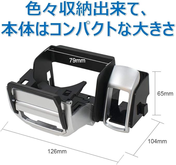 多機能タイプのドリンクホルダーです。これ1つでペットボトルや500mlの紙パックの他、スマホやたばこ等を置くことができます。