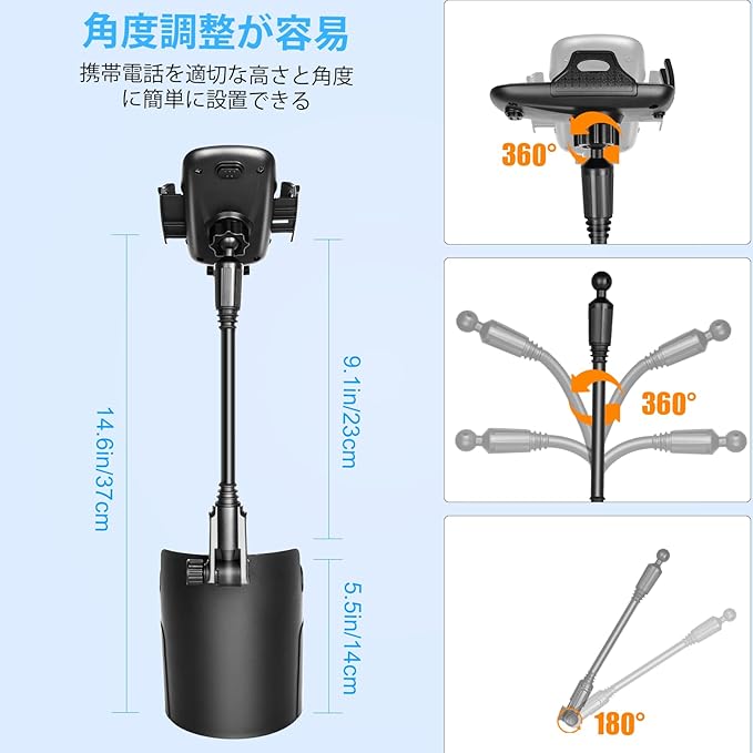 [2-in-1カップホルダー携帯電話ホルダー】車用カップフォンホルダーは、高品質のスタンド、アップグレードされたグースネックホース、カーブしたベースから構成されています。携帯電話ホルダーを車のカップホルダーに同時に入れることで、カップホルダーのスペースを大幅に節約でき、節約したスペースにウォーターカップや鍵などを置くことができます。