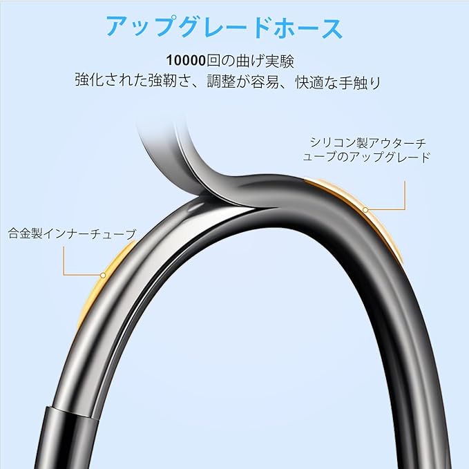 [マルチアングル調整] 9インチのアップグレードグースネックホース。車種によって、ブラケットを好きな位置と角度に調整できます。