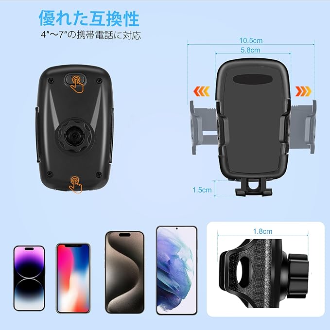 [ユニバーサル互換性]このカップホルダー電話ホルダーは、4から7までのすべてのスマートフォンと互換性があります。サイズの制約を気にすることなく、すべての電子機器に確実なフィットをお楽しみください。