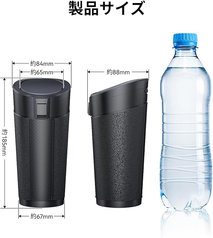 SETHDA 車 ゴミ箱 スリム 蓋付き 車用 ドリンクホルダー ボトル型 収納 小物入れ 袋付き 押圧デザイン 簡単開閉 ダブルカバー設計 漏れ防止助手席 後部座席 対応 小型車用 ソフトゴミ箱 スラッシュボトル カー用品 便利グッズ 車内用品 多車種対応(ブラック)