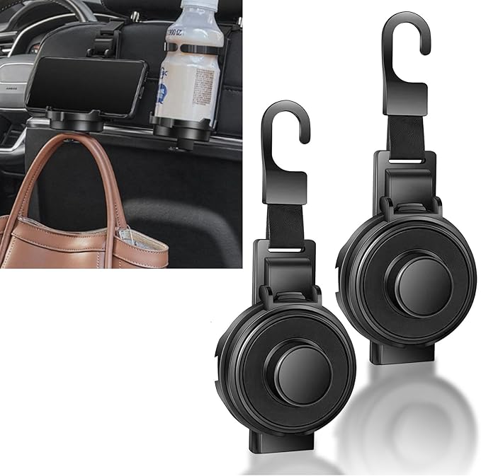 【3in1仕様|ドリンクホルダー 車 収納フック スマホスタンド】:車内空間を最大活用する3in1カー用品。シート背面に設置するだけで、ドリンクホルダーとして飲み物を安定保持、ハンドバッグや荷物用フック、動画視聴用スマホスタンドとして多機能に活躍。お子様の水筒やお菓子、スマートフォンの置き場に最適な便利グッズです。