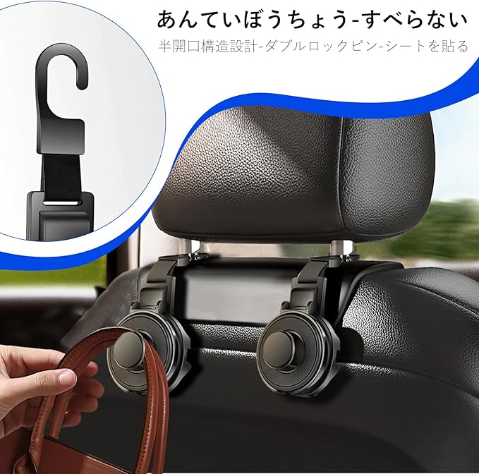 【取り付け簡単|工具不要3秒設置】:取付には一切工具も必要なく,ベルトをヘッドレストに通すだけの簡単装着できます。車のヘッドレストフックは、ほとんどの車/SUV/トラックにフィットします。ベルト通し式で取り外し自由、シートを傷つけずに簡単設置。振動に強く走行中も安定したカーアクセサリーです。