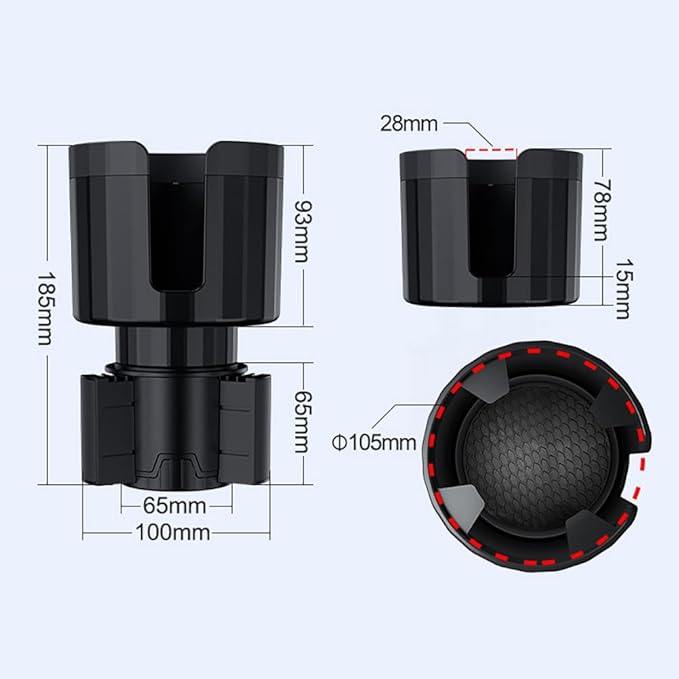【調節可能なベース】65〜100mmの拡張可能ベース直径で、様々な車載カップホルダーに対応。滑り止めシリコンパッドが安定した支持を提供し、走行中の飲み物の滑落を防止します。