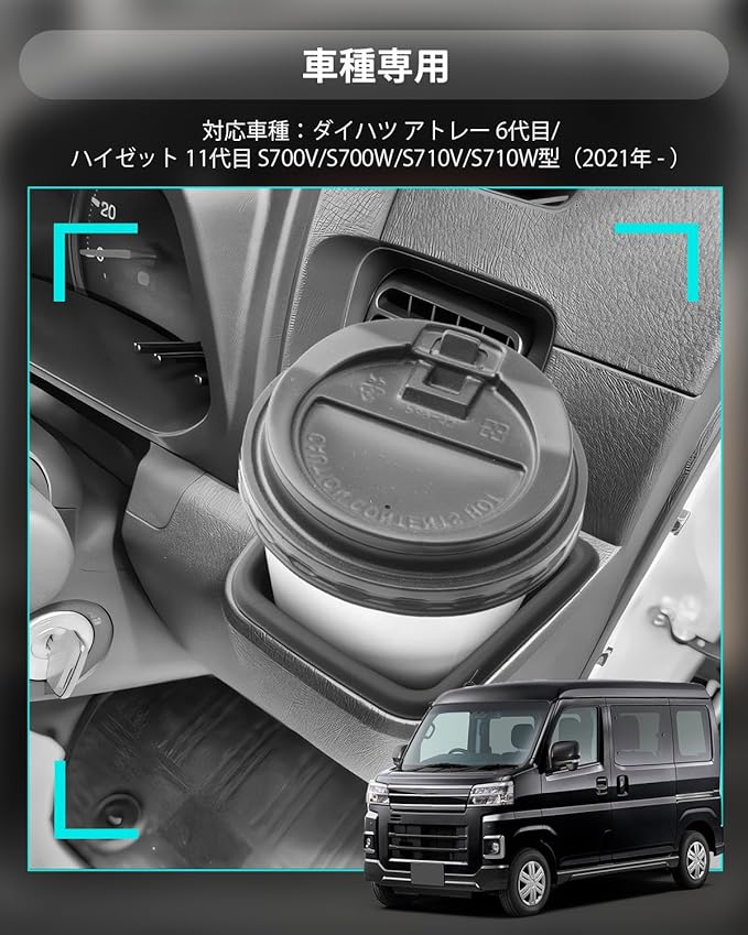 1. 【車種専用設計】対応車種:ダイハツ アトレー 6代目/ハイゼット 11代目 S700V/S700W/S710V/S710W型(2021年 - )。 アトレー 専用にデザインされた カップホルダー で、車内のスペースにぴったりフィット。通勤や長距離ドライブでも、水筒がしっかりと固定され、車の揺れでこぼれる心配がありません。