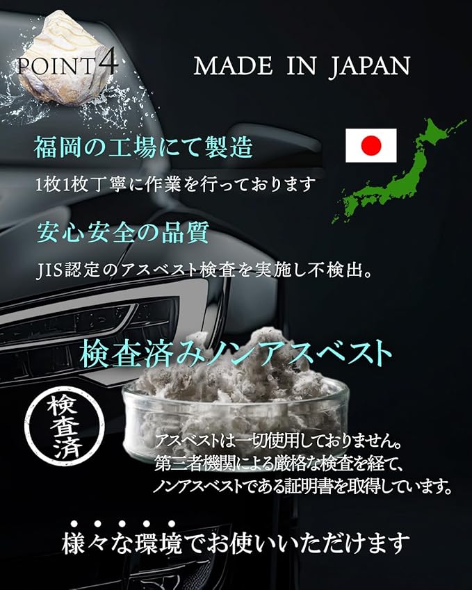 【ノンアスベスト】アスベストは、一切使用しておりません。第三社機関による厳格な検査を経て、ノンアスベストである証明書を取得しています。