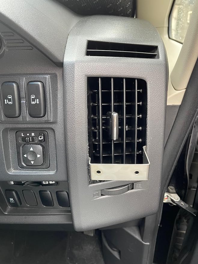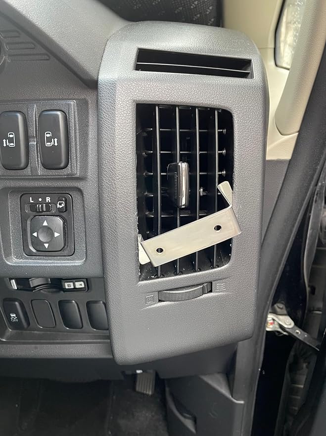 デリカD5の運転席と助手席のエアコン吹き出し口に最適なドリンクホルダーブラケットです。ステンレス製で丈夫な作りで、吹き出し口パネルの隙間に差し込むだけの簡単取り付けが可能です。ブラケットを使えば、ドリンクホルダーを水平に固定できるので、ドアに干渉せずに安定した設置ができます。風向きの調整も自由自在です。左右セット(2個入り)で材質は1mm厚のステンレスを使用しており、取り付け時に隙間を広げて調整もできます。周囲をマスキングテープで養生し内装ヘラ等を使用して取り付けすることで、パネルへの傷つきを防げます。取り付けナットは別途ご用意ください。取り付け作業および使用は自己責任でお願いします。中央の吹き出し口には対応していません。