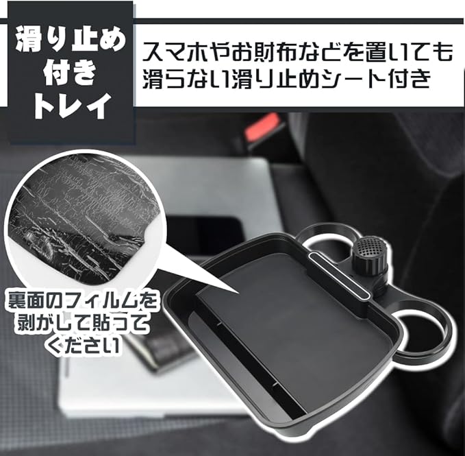 ドライブや長距離運転に欠かせない車用トレイ付きドリンクホルダーです。既存のドリンクホルダーに挿し込むだけで、トレイとカップホルダーが増える便利なアイテムです。