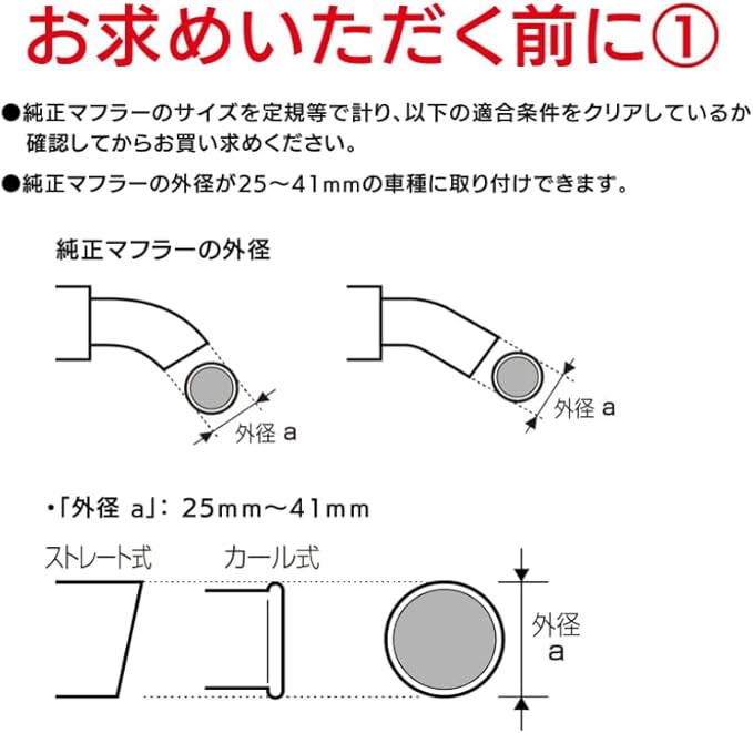 ●下向きの純正マフラーを大口径ストレートタイプにドレスアップできるマフラーカッターです。