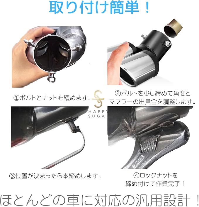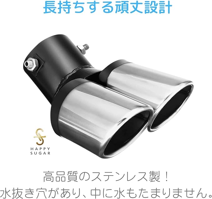 HAPPY SUGAR マフラーカッター 2本出し スラッシュカット 汎用 排気テールマフラー 斜めカット 外装 パーツ ドレスアップ カスタム (下向き)