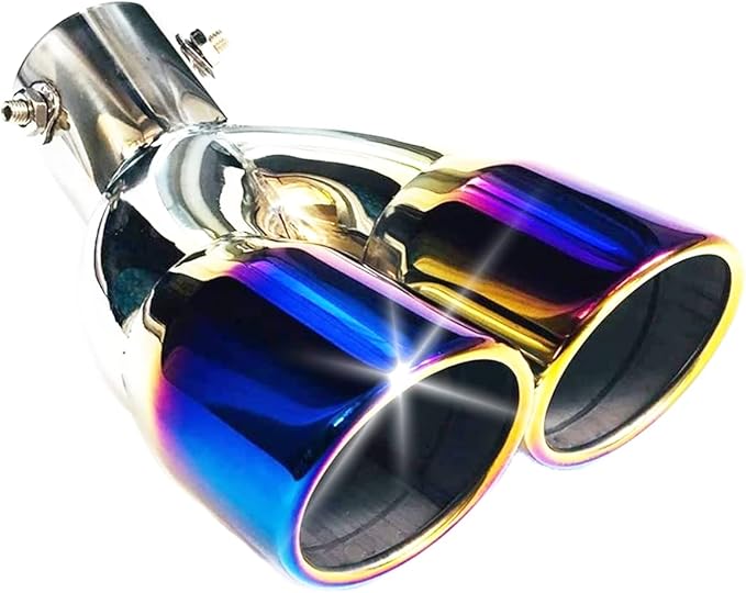 大口径 デュアル タイプ で チタンカラー の 焼け色 も 美しい 高品質 ステンレス 製 の マフラーカッター です。