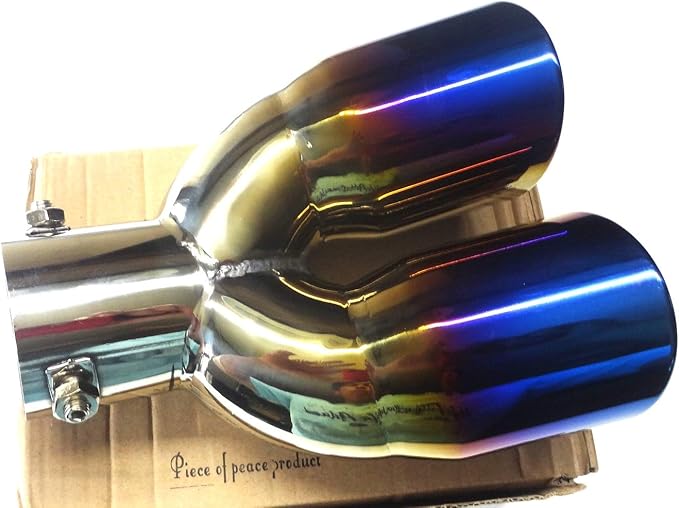 【Piece of peace product】 マフラーカッター チタン 焼け色 下向き 2本出し 斜めカット ステンレス 製 テールパイプ デュアル 出し ドレスアップ 鏡面 (チタン デュアル)