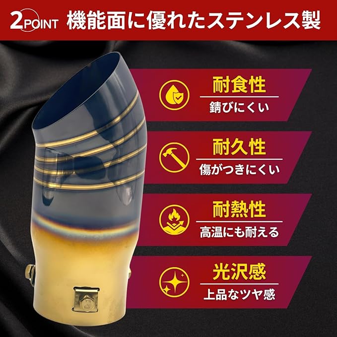 マフラーカッター 汎用 下向き ターンアウト チタン風 ステンレス製 内径35-63mm 車用 トラック SUV 軽自動車 ドレスアップ カスタム パーツ