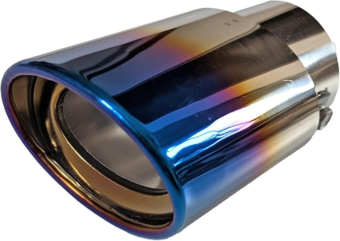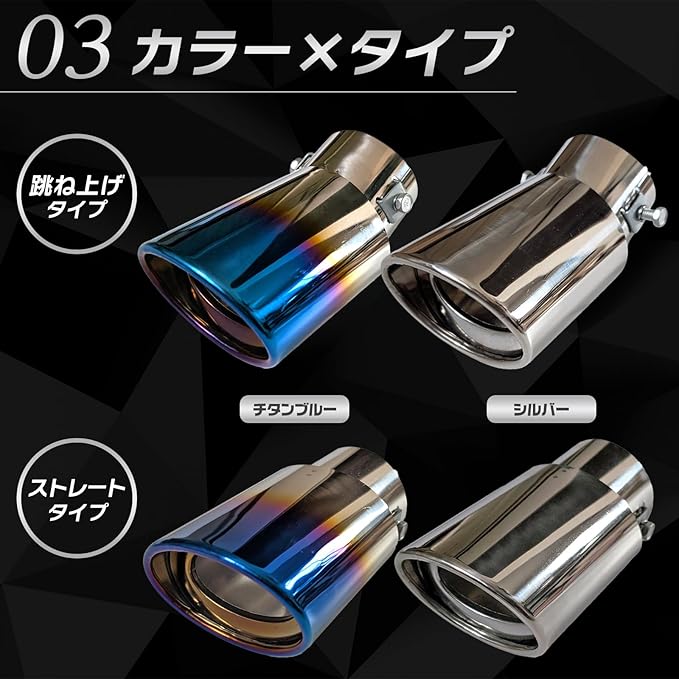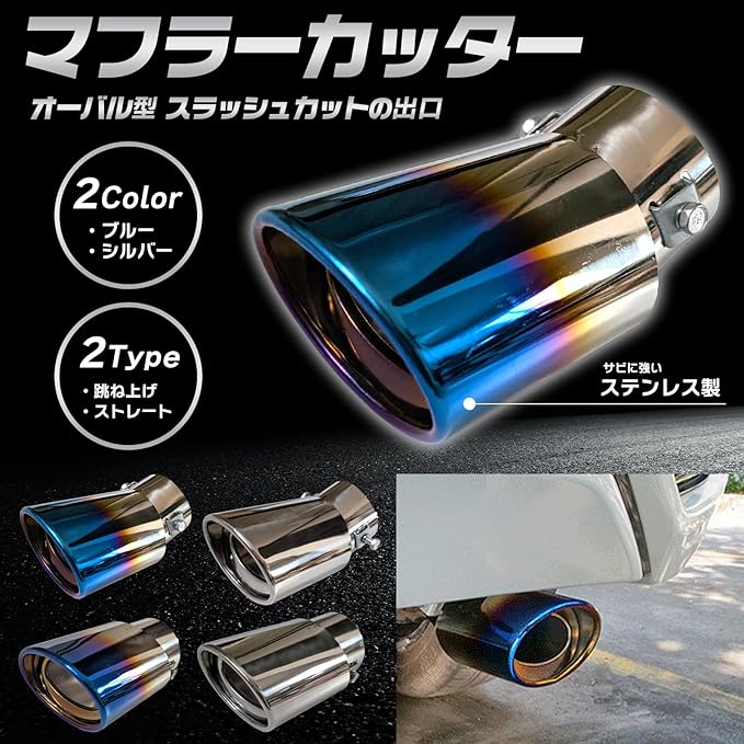 汎用 マフラーカッター 下向き 曲 シングル スラッシュ オーバル 跳ね上げ 1本 ステンレス 軽 自動車 チタンブルー ストレート