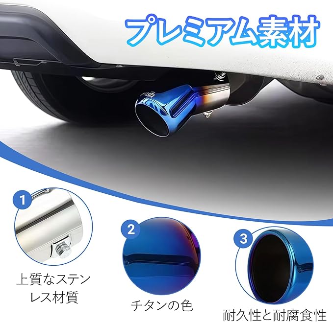 ✅【高品質ステンレス鋼】このマフラーカッターは高品質のステンレススチール製で、滑らかな質感、 頑丈で耐久性がある。摩耗や錆に強く、長寿命です。特殊処理された表面はチタンカラーの仕上がりを実現し、美しい外観だけでなく、車全体の質感を高めます。