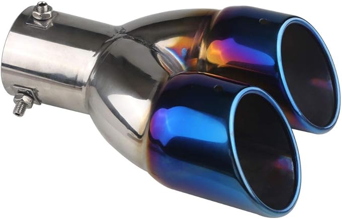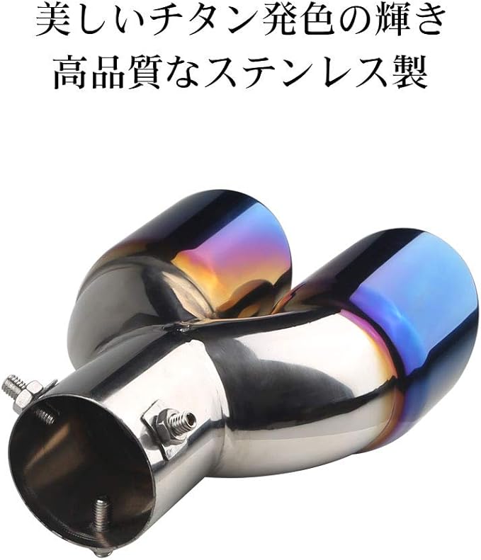 汎用 オーバル型 車用マフラーカッター 2本出し ストレート式 30mm-60mm取付直径 デュアル スラッシュ ポン付け簡単取付 重厚感有り 後付け エアロパーツ 六角レンチ付属 チタン焼き風