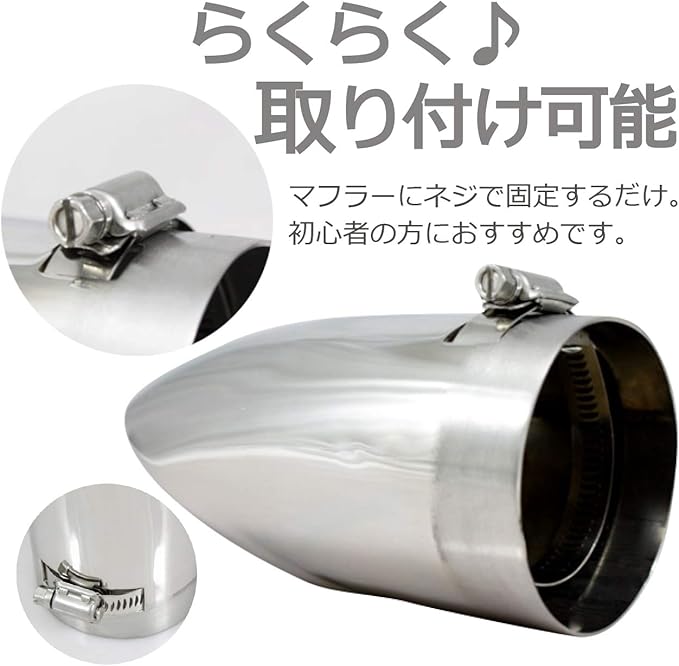 Felimoa マフラーカッター 斜めカット 汎用 跳ね上げ シングル ステンレス製 テールパイプ 下向き対応 汚れ防止